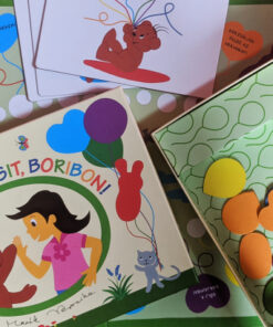 Mennyire örült Boribon, amikor egyszerre hét lufit kapott ajándékba! Te is összegyűjthetsz hét különböző színű lufit. Te is összegyűjthetsz hét különböző színű lufit. Mindegyik lufi alatt találsz egy kis feladatot, amit teljesíteni kell. Fogadjunk, hogy ilyen játékot nem játszottál még soha: meg kell érinteni egymást! Megcsikizhetjük egymás tenyerét, meghúzhatjuk egymás fülét, haját. Az is lehet, hogy puszit kell adnunk. Ezért olyanok játsszák ezt a játékot, akik szeretik egymást: szülő és gyerek, nagyszülő és unoka, nagytesó és kistesó – vagy barátok egymás közt. Kettesben a legjobb a játék, de azért egy harmadik is belefér…