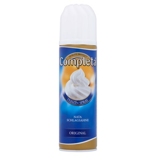 Tejszínhab spray 26%. Ultramagas hőmérsékleten hőkezelt, cukrozott, homogénezett, aeroszolos tejszín, 26% zsírtartalommal.
