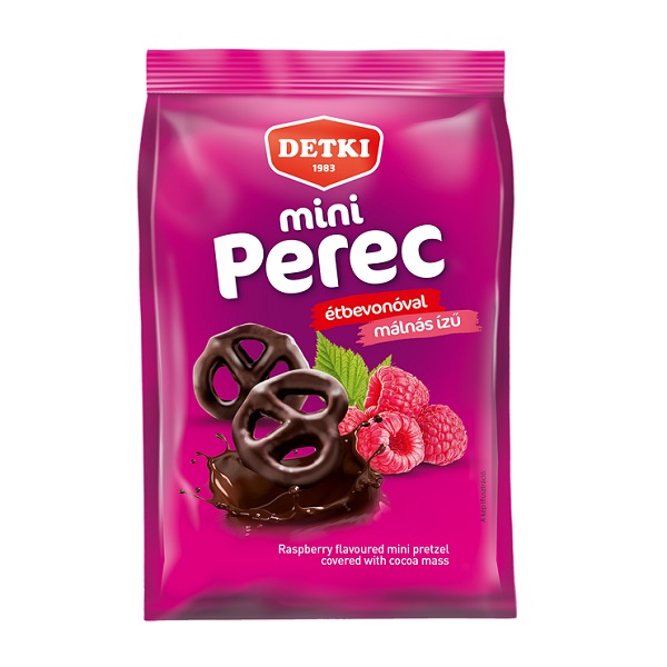 Detki Mini pretzels dark chocolate & raspberry (Málnás-csokis kisperec) 160g