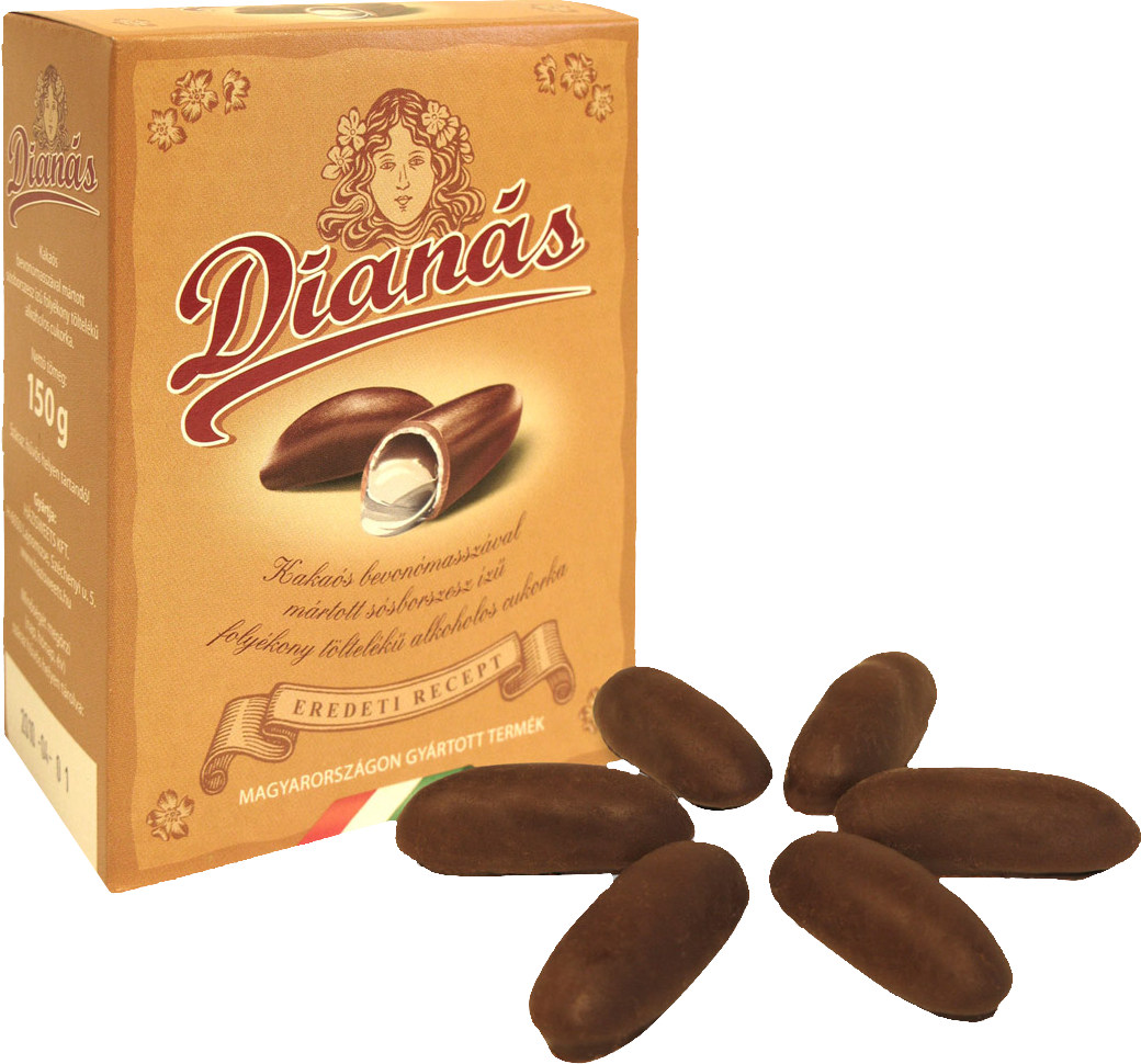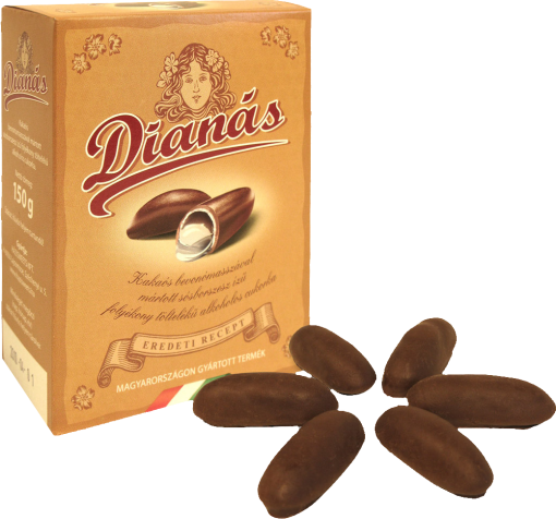 Dianás cukorka – kakaós étbevonómasszába mártott sósborszeszes, mentolos ízű folyékony töltelékű alkoholos cukorka.