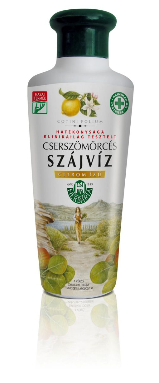A Cserszömörcés szájvíz (citrom ízesítéssel) cserszömörce és kakukkfű kivonatát tartalmazza. Gyógynövény-hatóanyagai csökkentik a fogíny gyulladását, mérséklik a vérzést. A szájvízzel történő öblögetés megfelelően egészíti ki a fogtisztítást és szájhigiéniát. Használata után a kellemes, friss lehelet hosszú ideig megmarad. A szájvíz fanyar, összehúzó érzetet keltő hatása természetes. A gyógynövény kivonatok hatását klinikai vizsgálatok igazolják.