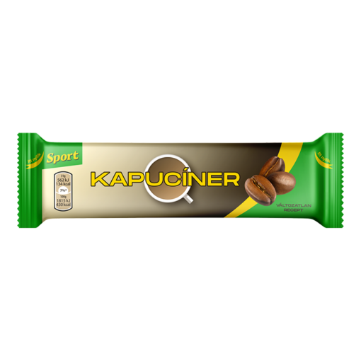 Étcsokoládéval (22%) bevont szelet kávés töltelékkel (39%) és tejszínízű töltelékkel (39%)