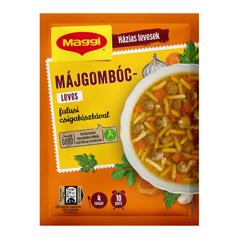A változatos táplálkozás érdekében érdemes különböző húsféléket, így májat is fogyasztani. Házias íze a gyermekkort idézi vissza. Magyarország legkedveltebb tasakos levese, mely bővelkedik omlós, finom májgombócokban és falusi csigatésztában.