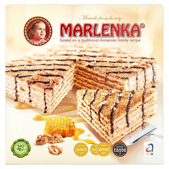 Sűrített tej édes kakaóval (tej, cukor, glükóz szirup, csökkentett zsírtartalmú kakaó), Margarin [pálmaolaj, víz, teljes mértékben hidrogénezett kókuszolaj, repceolaj, emulgeálószer (zsírsavak mono- és digliceridjei, napraforgó lecitin), só, savanyúság szabályozó (citromsav), aroma], Dúsított búzaliszt (búzaliszt, vas fumarát, niacin, folsav, B1-vitamin, B2-vitamin), Cukor, Tojáskeverék, Méz 4,3%, Dió 1,2%, Karamellizált cukorszirup, Sütőpor (nátrium-hidrogén-karbonát), Természetes aroma (vanília, dió), Aroma (etil-vanillin).