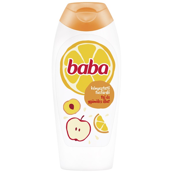 - A Baba tej és gyümölcsillatú kényeztető tusfürdő lágy habjával felfrissít, és üde illatot hagy maga után.