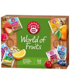Collection of flavoured teas. Teekanne Word of Fruits Collection is a unique collection of Teekanne’s best Word of Fruits teas. Enjoy our delicious collection of fruit teas with a harmonious composition of exquisite and tasty fruit teas! The box include 6 different kind of fruit teas for every taste! Not just for your but great idea for gifting for every occasion.